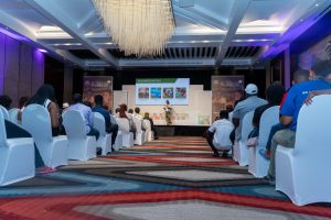 Stage, AV, event branding and delegate coordination. Accra, 2024.